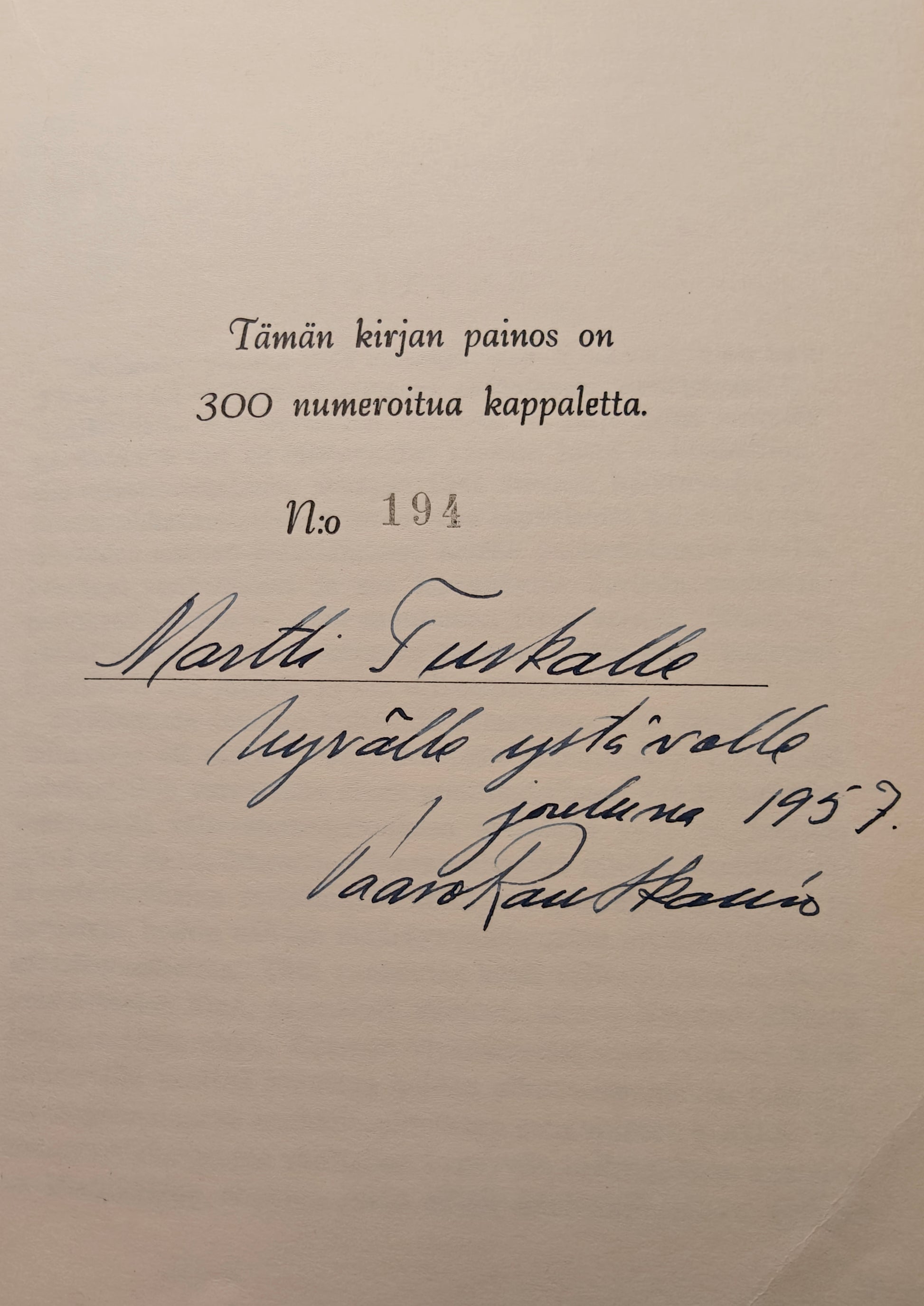 Lista N:o 1 Kertomus pitkästä odotuksesta (numeroitu 194/300)